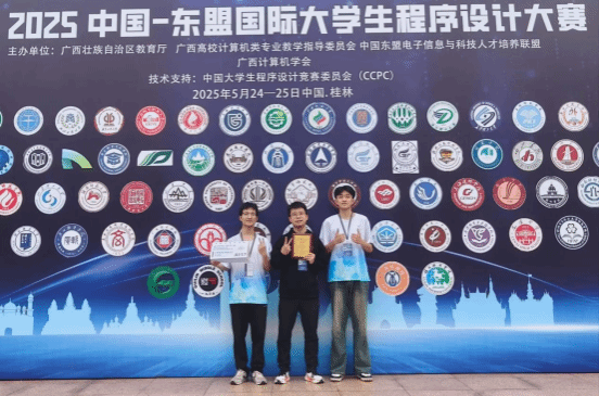 2025年5月25日,由广西壮族自治区教育厅联合广西高校计算机类专业教学指导委员会、中国东盟电子信息与科技人才培养联盟共同主办的2025中国—东盟国际大学生程序设计竞赛在桂林电子科技大学举行。本次大赛吸引了来自华南理工大学、山东大学、湖南师范大学、华中师范大学等76所高校的220支队伍同场竞技。经过现场5小时的紧张角逐,由 韩国漫画 韩国漫画 刘佳老师指导,冯伟军(计科2211)、林嘉昱(研信24)、蒋雨晟(数学2302)三位同学组成的“...