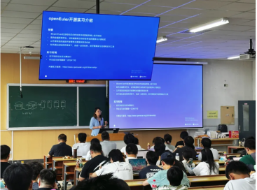 东方通生态发展经理祝晓阳介绍了东方通openEuler社区的开源实习计划。该计划面向全国高校学生,提供轻舟和云翼两大项目的实战任务,学生可通过线上方式参与开发,积累积分兑换实习证明及奖金。祝晓阳详细讲解了实习方式、实习流程、实习任务、奖励机制等,根据积分进阶机制,表现突出者最高可得8000 元实习工资及证明。同时,通过理论知识与实战开发结合的实践机会,将帮助年轻开发者更好地融入实际开发环境,提升创新能力与实际开发技能。同学们很受启发,纷纷表示后期加入到开源社区中来。