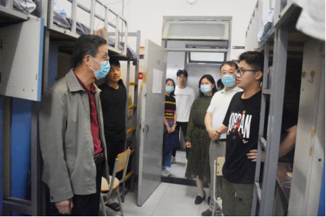 党委常务副书记庞群、党委副书记兼副院长蔡振山、副处级专职组织员鲁永艳一行深入到新生宿舍和新生班级,了解2020级新生的学习及生活情况。学院领导对新生是否适应大学生活十分关心,仔细查看宿舍的各种设施是否安全完善,亲切地与新生们进行沟通和交流,询问他们来自哪里,并针对饮食和气候的不同进行了叮嘱。嘱咐同学们要养成疫情防控的良好习惯,强身健体,自律自强,筑牢安全意识。鼓励同学们要尽快学会独立,更好地适应大学生活。