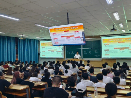 “从递交入党申请书到成为正式党员,总共需要经历申请入党、入党积极分子的确定和培养教育、发展对象的确定和考察、预备党员的接收、预备党员的教育考察和转正五个关键阶段,每个环节都有明确的时间要求和标准。”2022级学生党员焦国峰手持精心制作的“发展党员流程时间轴”,向在场80余名新生详细讲解入党全流程。