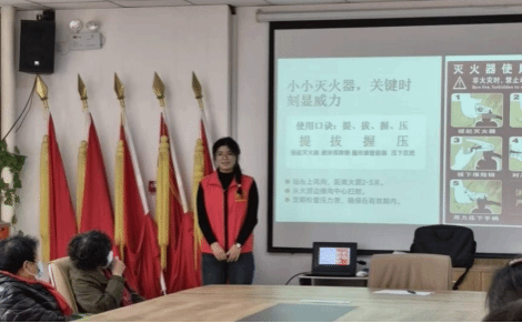 宣讲现场,学生志愿者围绕居民日常生活场景,从火灾预防、器材使用、逃生自救三大核心板块展开讲解。针对电气火灾、厨房用火、燃气泄漏等高频隐患,志愿者结合真实案例,强调“人走火灭气关”的安全准则,提醒居民定期检查电线老化、插座超负荷等问题,妥善存放酒精、油漆等易燃物品。在灭火器材使用环节,志愿者通过模型演示,清晰拆解干粉灭火器“提、拔、握、压”四步法,明确“对准火焰根部扫射”的关键要领。